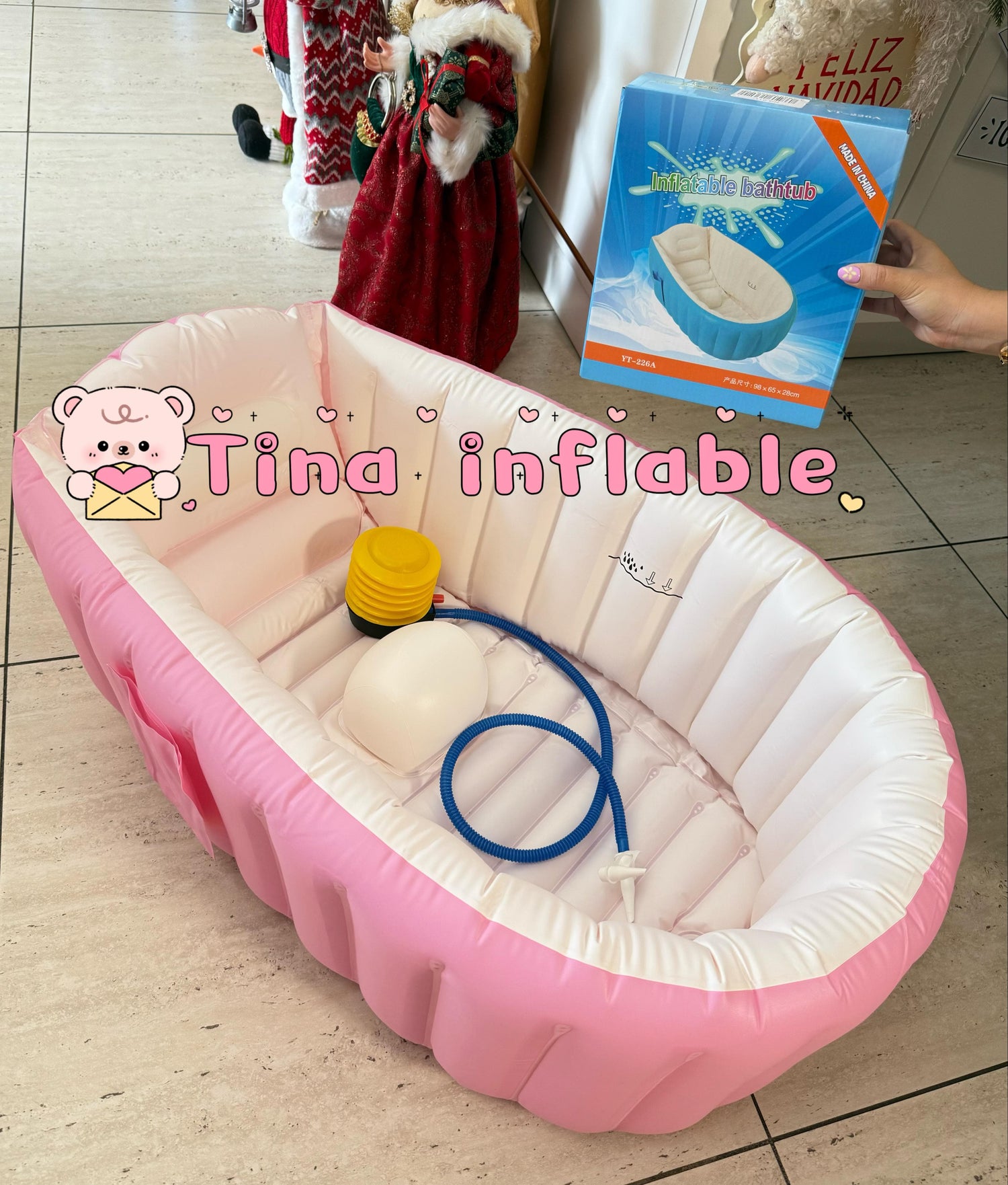 Su diseño antideslizante garantiza comodidad y seguridad en cada baño. ¡Incluye bomba de aire GRATIS y es ideal para usar en casa o llevar de viaje!