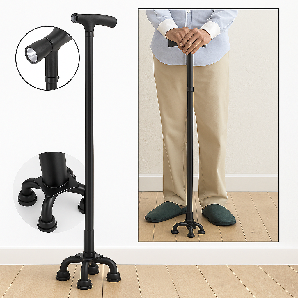 Avanza con seguridad en cada trayecto gracias a un bastón diseñado para adaptarse a tu ritmo. Su estructura firme proporciona equilibrio en superficies desiguales, mientras su lámpara incorporada mejora la visibilidad en entornos con poca luz. Es una herramienta confiable para quienes disfrutan de salir a caminar sin preocuparse por la hora ni el terreno. Pensado para acompañarte en tu rutina diaria o en salidas imprevistas, este bastón une practicidad y diseño sin complicaciones.