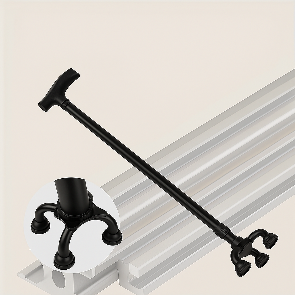 La pata cuenta con un material de alta adherencia que evita resbalones y mejora la estabilidad en superficies lisas, mojadas o irregulares.
