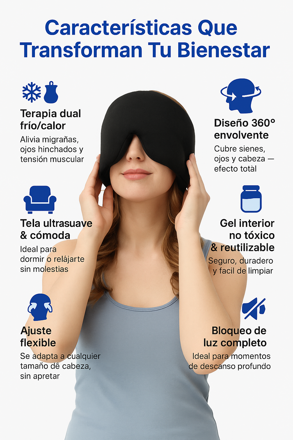 Este gorro es ideal para aliviar migrañas, estrés, tensión y dolores de cabeza. Su efecto frío ayuda a reducir inflamación y relajar los músculos, mientras que el calor favorece la circulación. Perfecto para quienes buscan una alternativa natural sin medicamentos.